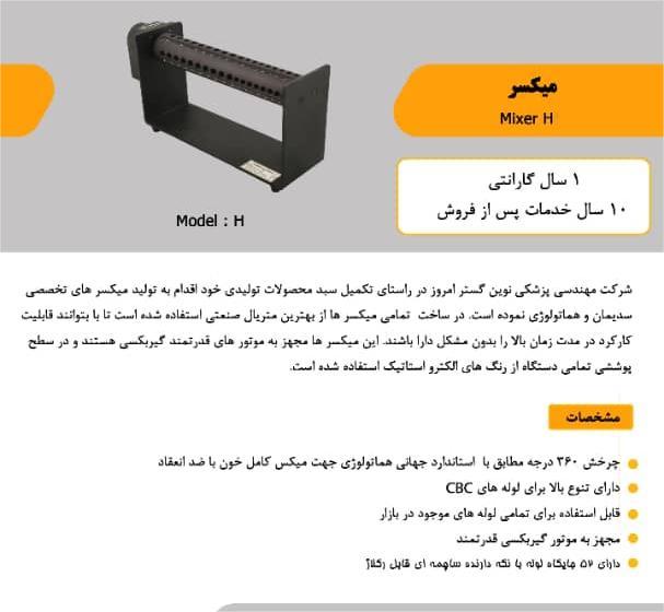 میکسر مدل H با زاویه چرخش ۳۶۰ درجه و مطابق با استانداردهای جهانی طراحی شده تا میکس کردن انواع لوله های آزمایشگاهی، به ویژه لوله های CBC را با بالاترین بازده داشته باشد. استفاده از بهترین متریال صنعتی باعث شده این دستگاه علاوه بر دوام فوق العاده، عملکردی روان و کم صدا ارائه دهد. همچنین، بهره گیری از رنگ الکترواستاتیک مقاوم، طول عمر محصول را چندین برابر میکند.