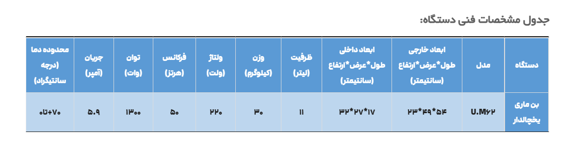 قیمت بن ماری یخچالدار به عوامل مختلفی مانند ظرفیت دستگاه، کیفیت قطعات، وجود سیستم خنک‌کننده و دقت کنترل دما بستگی دارد. برای اطلاع از لیست قیمت به‌روز بن ماری یخچالدار و شرایط خرید اقساطی، می‌توانید با تیم فروش مبنامد تماس بگیرید و با اطمینان خاطر بهترین دستگاه را انتخاب نمایید. جهت ارتباط با تیم ما کافیست با شماره های 66381035-66381023 و یا شماره 09121340703 تماس حاصل فرمایید.