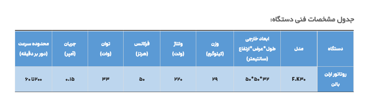 - امکانات سفارشی و آپشنهای متنوع: روتاتور ارلن بالن را میتوان با توجه به نیاز متقاضی، با آپشنهای مختلف و برنامههای کاربردی متفاوت سفارش داد.