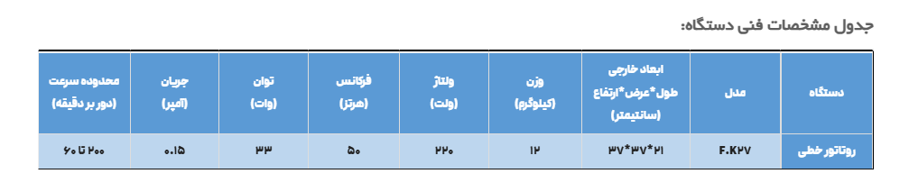 روتاتور خطی با استفاده از فناوریهای روز دنیا طراحی شده است و ویژگیهای برجستهای دارد که در ادامه به آنها اشاره میشود: