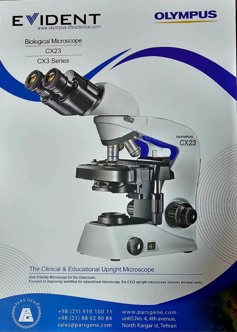 میکروسکوپ بیولوژی مدل CX31 ساخت کمپانی Olympus، یک میکروسکوپ بیولوژیکی دو چشمی است با این مزیت که قطر عدسی چشمی با پهنای بیشتر و میدان دید بالاتر داشته و یکی از میکروسکوپ‌های پر کاربرد و مناسب در زمینه‌ی بیولوژی، هماتولوژی، سرولوژی و … می‌باشد. در طراحی این میکروسکوپ کنترل‌های اصلی نزدیک به هم قرار گرفته تا کاربر با کمترین حرکات، بتواند از میکروسکوپ استفاده نماید.