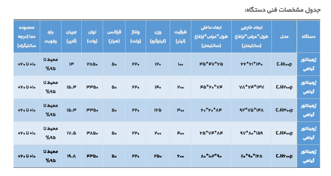 بازه کارکرد دمایی : دمای ۱۰+ تا ۶۰+ درجه سانتیگراد