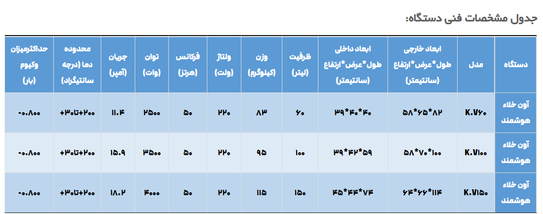 • توان مصرفی : 1500–2000 وات (با توجه به ظرفیت و تعداد المنت‌ها)