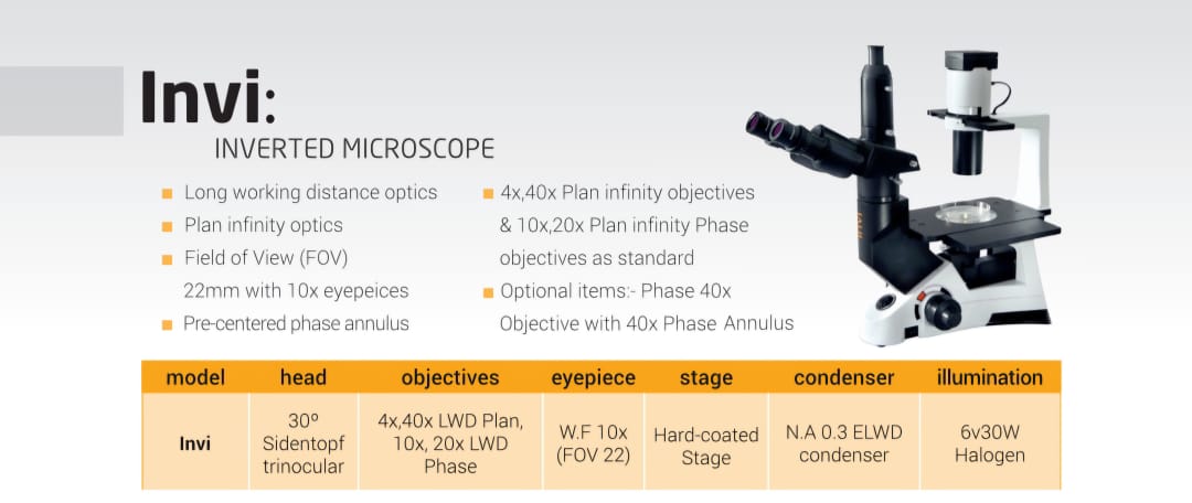مدل Invi 30° Sidentopf Trinocular با بهرهگیری از اپتیک Plan Infinity و عدسیهای Long Working Distance (LWD) گزینهای ایدهآل برای کارهای سلولی، بافتی و تحقیقاتی به شمار میرود.