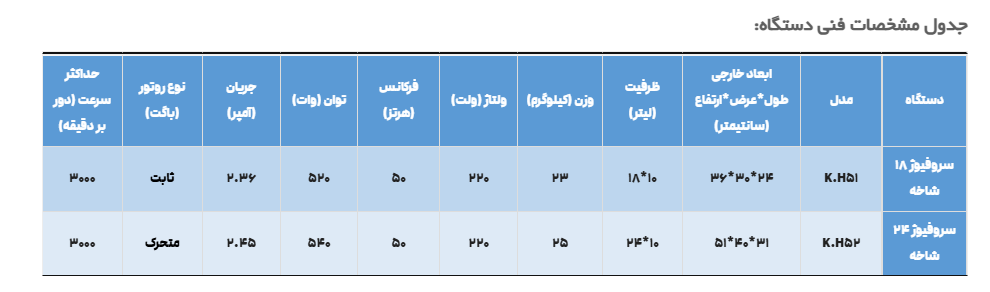 •    سیستم قطع هوشمند و آلارم هنگام اتمام پروسه یا تکانش روتور