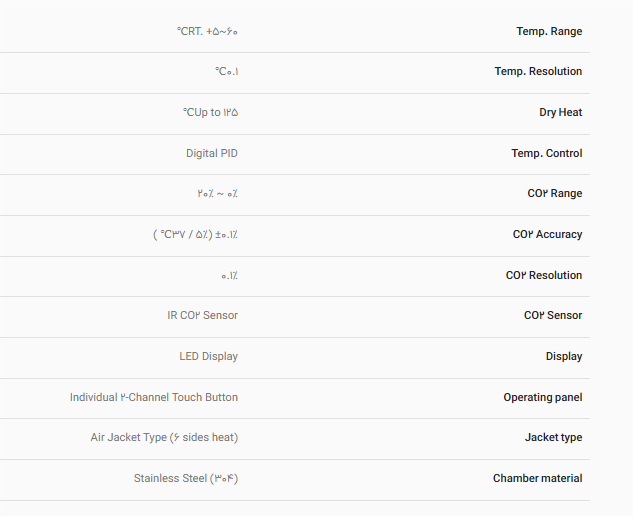 مشخصات فنی انکوباتور CO2