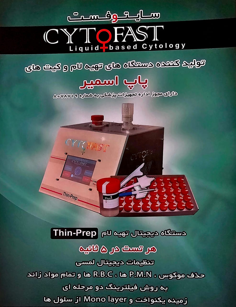 این دستگاه توسط متخصصان ایرانی طراحی و تولید شده و به عنوان اولین دستگاه تهیه لام Thin Layer Cytology ساخت ایران، جایگزینی قابل اعتماد برای نمونههای وارداتی محسوب میشود.
