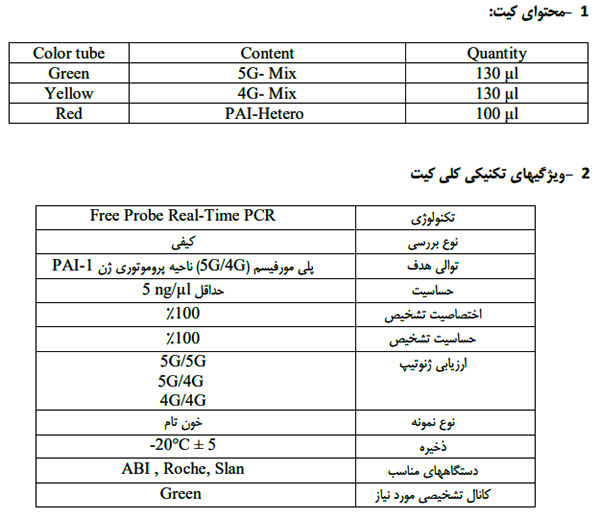 کیت Real-Time PCR شناسایی ژنوتیپ 4G/5G ژن PAI-1