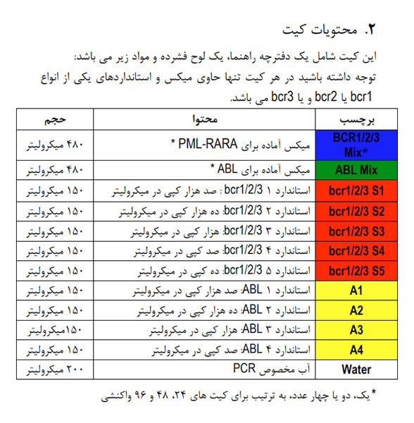 توجه : این کیت فاقد مواد لازم برای استخراج RNA یا تهیه cDNA می باشد!