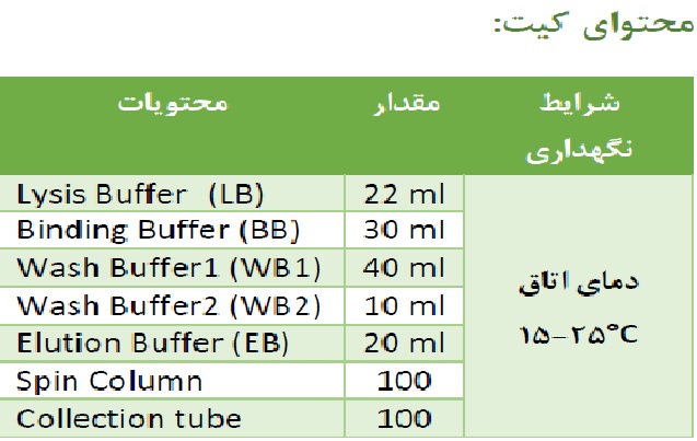 این کیت استخراج بر پایه ستون سیلیکا می باشد.