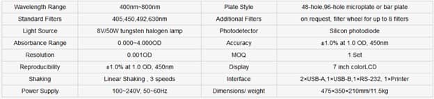 دارای 4 فیلتر استاندارد ( 405، 450، 492، 630 نانومتر ) و قابلیت افزایش تا 8 فیلتر